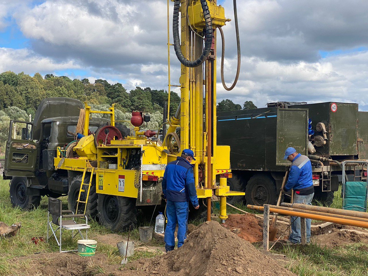 📌 Первичное бурение диаметром 140 мм для зондирования водоносных слоев.