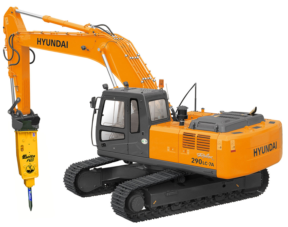 Гидромолот представляет собой ударное устройство, предназначенное для разрушения твердых материалов, таких как бетон, асфальт, скала и мерзлый грунт.